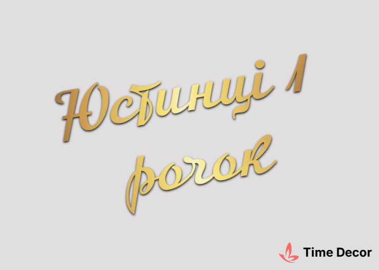 Пластиковий напис "Юстинці 1 рочок" – дзеркальний або матовий пластик, можливе виготовлення з клейкою зворотною поверхнею для легкого монтажу.