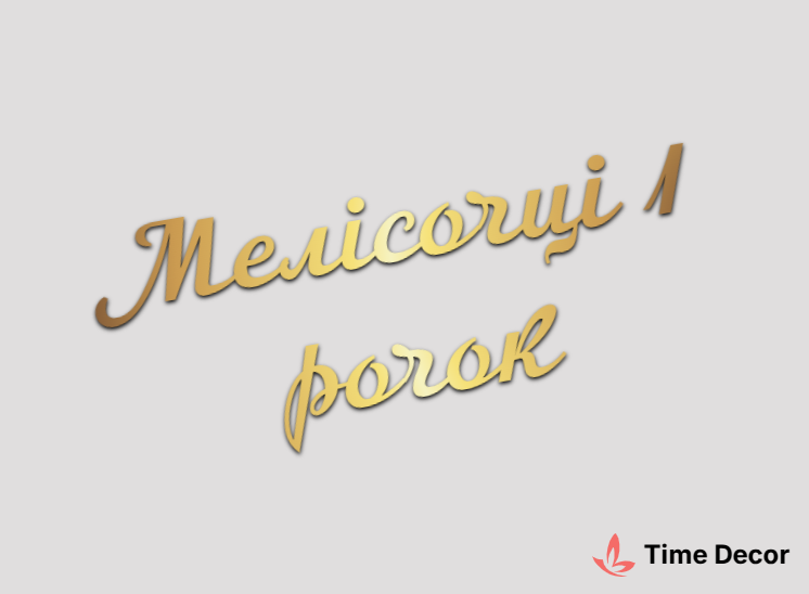 Пластиковий напис "Мелісочці 1 рочок" – дзеркальний або матовий пластик, можливе виготовлення з клейкою зворотною поверхнею для легкого монтажу.