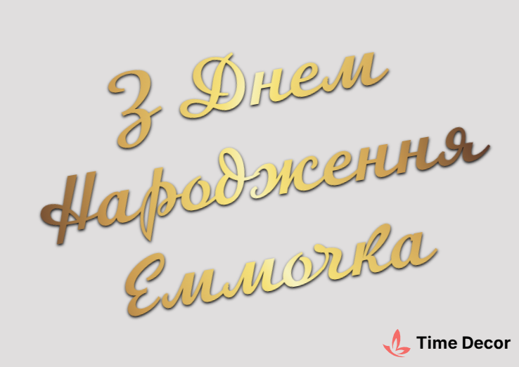 Пластиковий напис "З Днем Народження Еммочка" – дзеркальний або матовий пластик, можливе виготовлення з клейкою зворотною поверхнею для легкого монтажу.