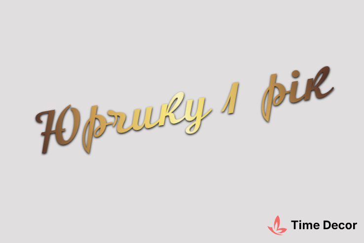 Пластиковий напис "Юрчику 1 рік" – дзеркальний або матовий пластик, можливе виготовлення з клейкою зворотною поверхнею для легкого монтажу.