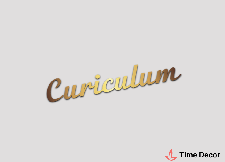Пластиковий напис "Curiculum" – дзеркальний або матовий пластик, можливе виготовлення з клейкою зворотною поверхнею для легкого монтажу.
