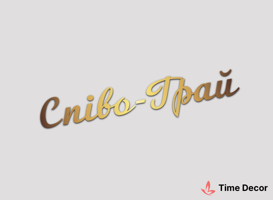 Пластиковий напис "Співо-Грай" – дзеркальний або матовий пластик, можливе виготовлення з клейкою зворотною поверхнею для легкого монтажу.