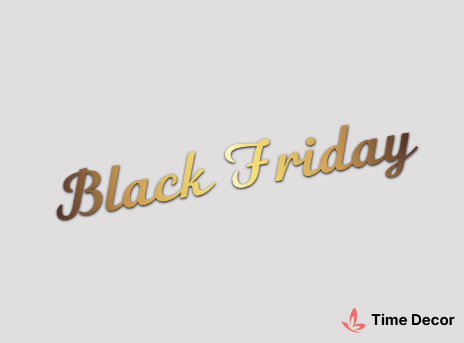 Пластиковий напис "Black Friday" – дзеркальний або матовий пластик, можливе виготовлення з клейкою зворотною поверхнею для легкого монтажу.