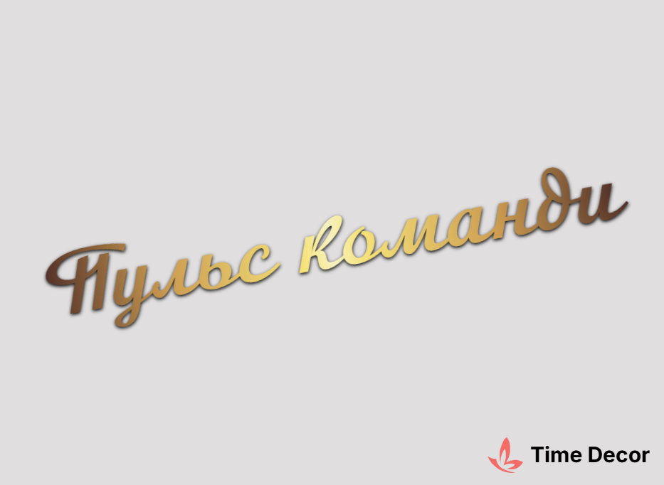 Пластиковий напис "Пульс команди" – дзеркальний або матовий пластик, можливе виготовлення з клейкою зворотною поверхнею для легкого монтажу.