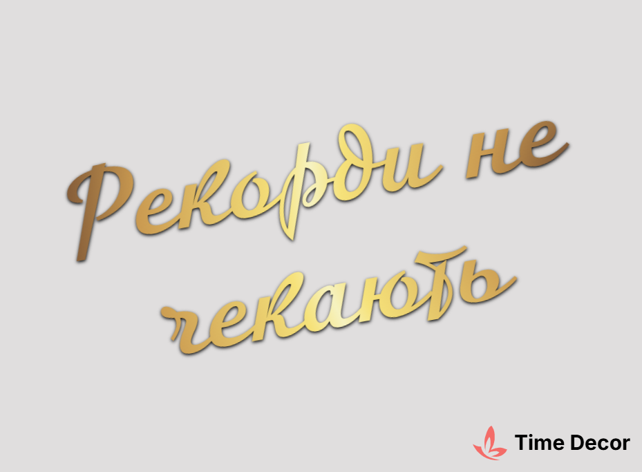 Пластиковий напис "Рекорди не чекають" – дзеркальний або матовий пластик, можливе виготовлення з клейкою зворотною поверхнею для легкого монтажу.