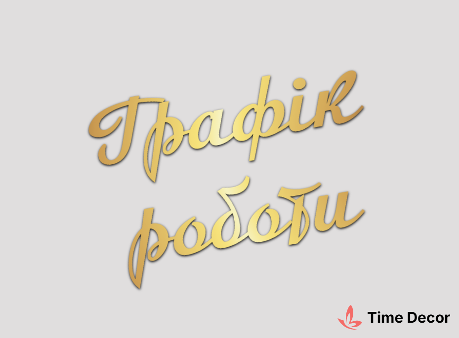 Пластиковий напис "Графік роботи" – дзеркальний або матовий пластик, можливе виготовлення з клейкою зворотною поверхнею для легкого монтажу.