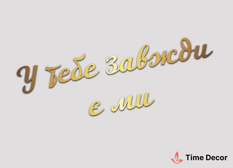 Пластиковий напис "У тебе завжди є ми" – дзеркальний або матовий пластик, можливе виготовлення з клейкою зворотною поверхнею для легкого монтажу.