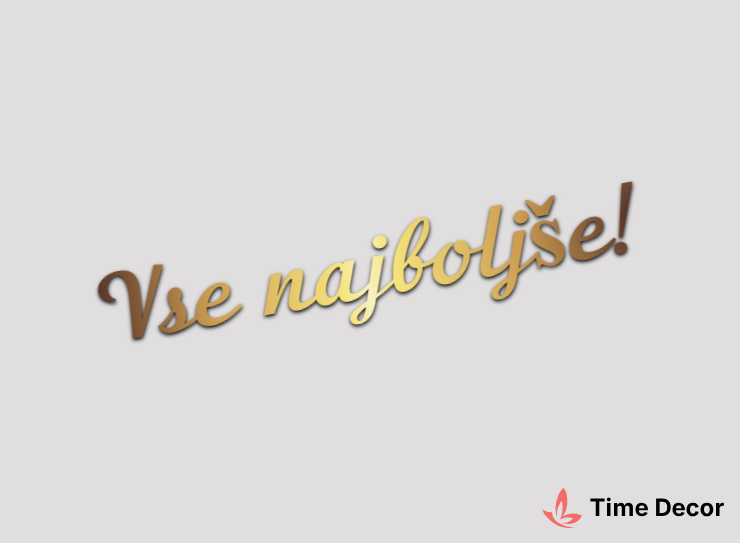 Пластиковий напис "Vse najboljše!" – дзеркальний або матовий пластик, можливе виготовлення з клейкою зворотною поверхнею для легкого монтажу.