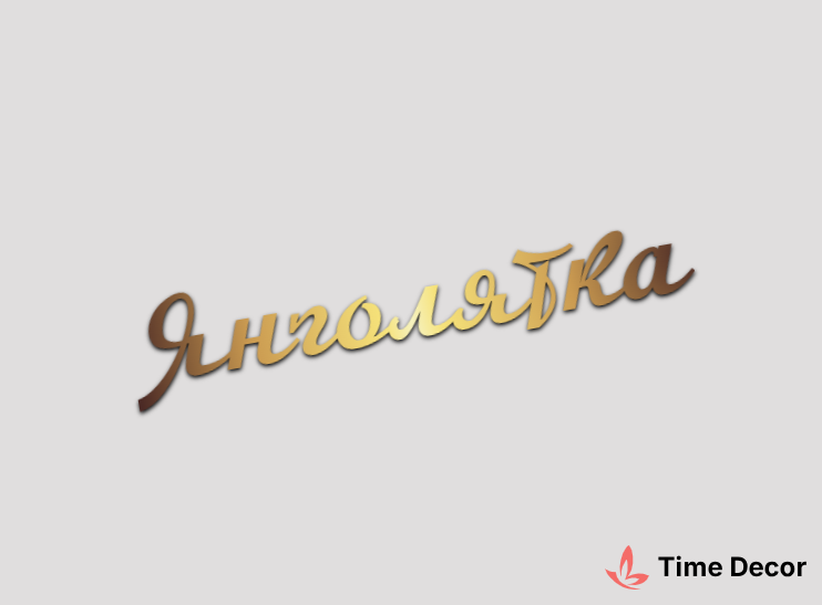 Пластиковий напис "Янголятка" – дзеркальний або матовий пластик, можливе виготовлення з клейкою зворотною поверхнею для легкого монтажу.