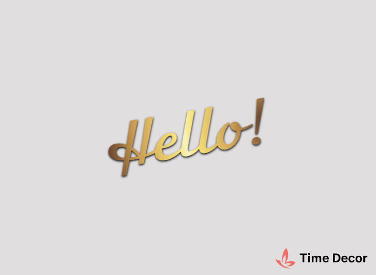 Пластиковий напис "Hello!" – дзеркальний або матовий пластик, можливе виготовлення з клейкою зворотною поверхнею для легкого монтажу.