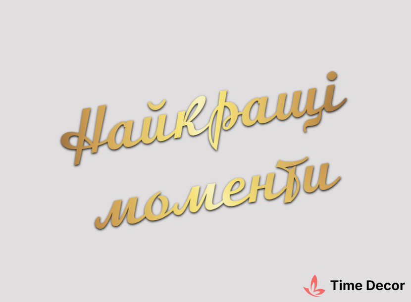 Пластиковий напис "Найкращі моменти" – дзеркальний або матовий пластик, можливе виготовлення з клейкою зворотною поверхнею для легкого монтажу.