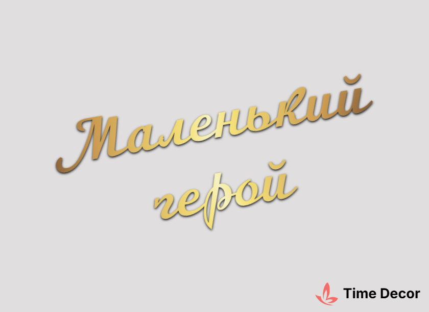 Пластиковий напис "Маленький герой" – дзеркальний або матовий пластик, можливе виготовлення з клейкою зворотною поверхнею для легкого монтажу.