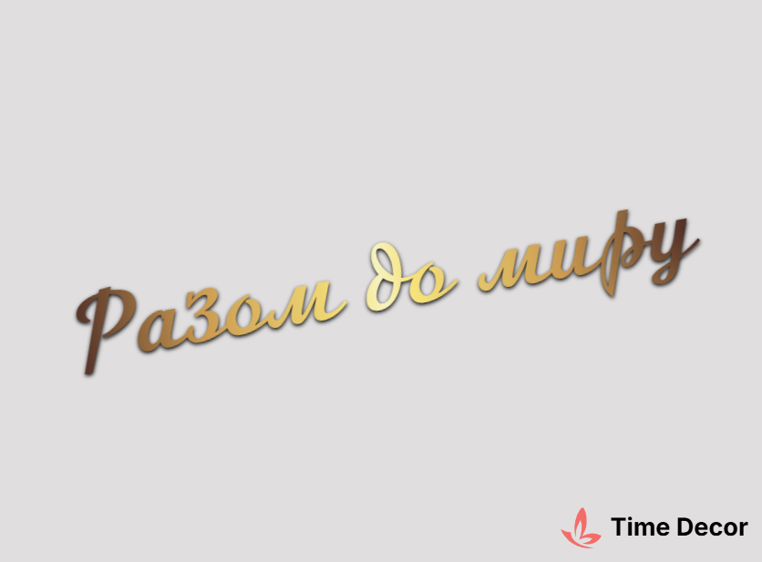 Пластиковий напис "Разом до миру" – дзеркальний або матовий пластик, можливе виготовлення з клейкою зворотною поверхнею для легкого монтажу.