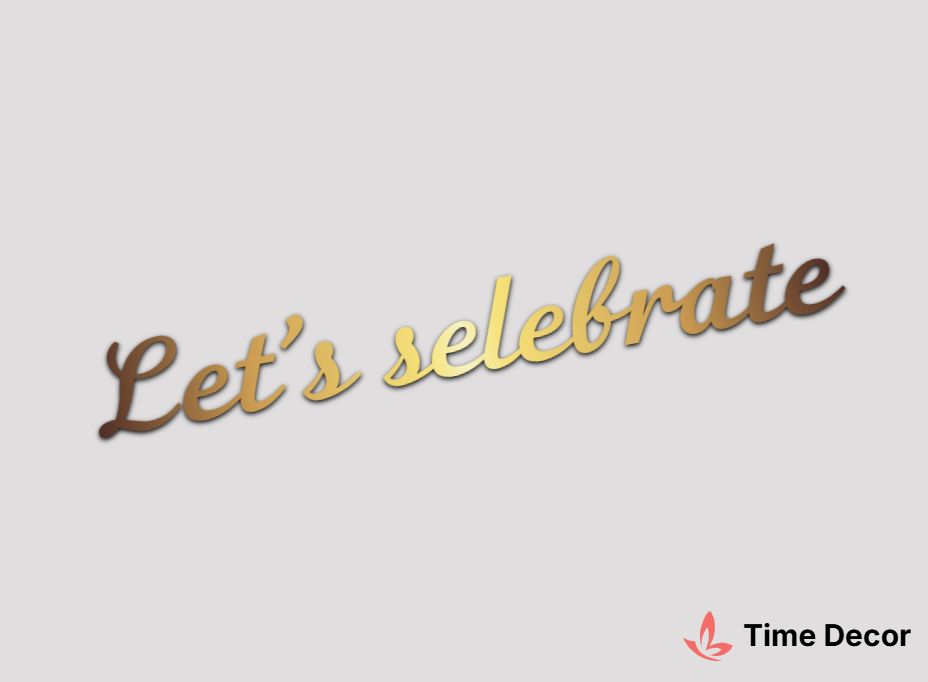 Пластиковий напис "Let’s selebrate" – дзеркальний або матовий пластик, можливе виготовлення з клейкою зворотною поверхнею для легкого монтажу.