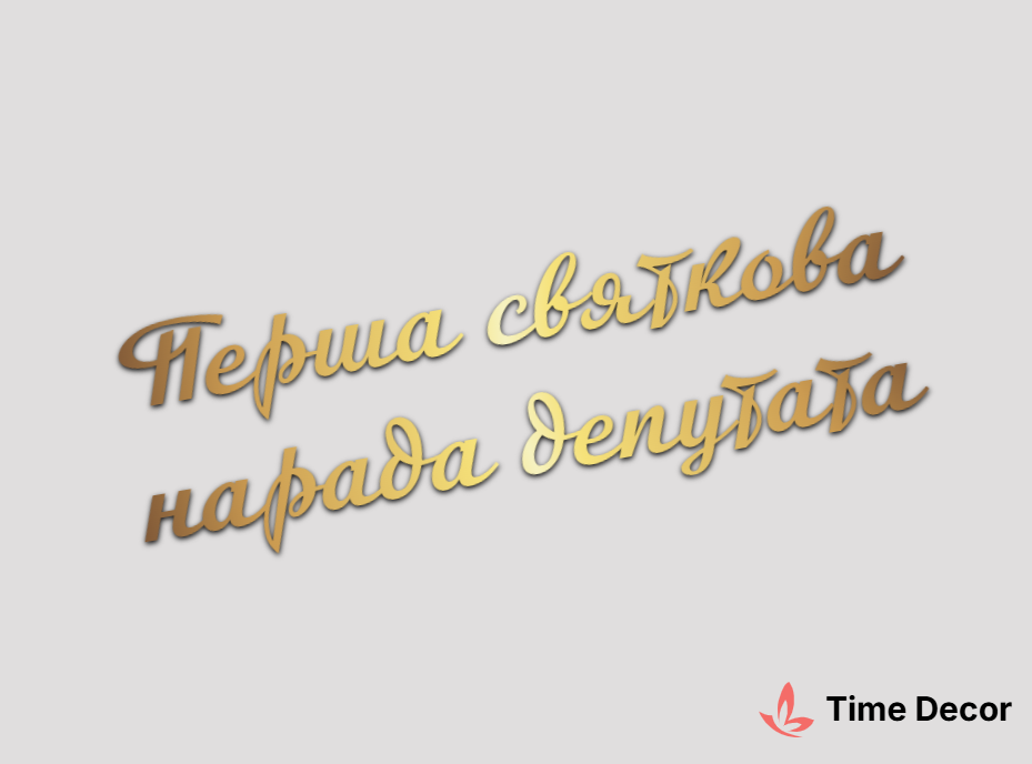 Пластиковий напис "Перша святкова нарада депутата" – дзеркальний або матовий пластик, можливе виготовлення з клейкою зворотною поверхнею для легкого монтажу.