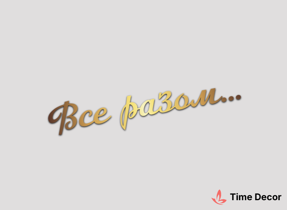 Пластиковий напис "Все разом…" – дзеркальний або матовий пластик, можливе виготовлення з клейкою зворотною поверхнею для легкого монтажу.