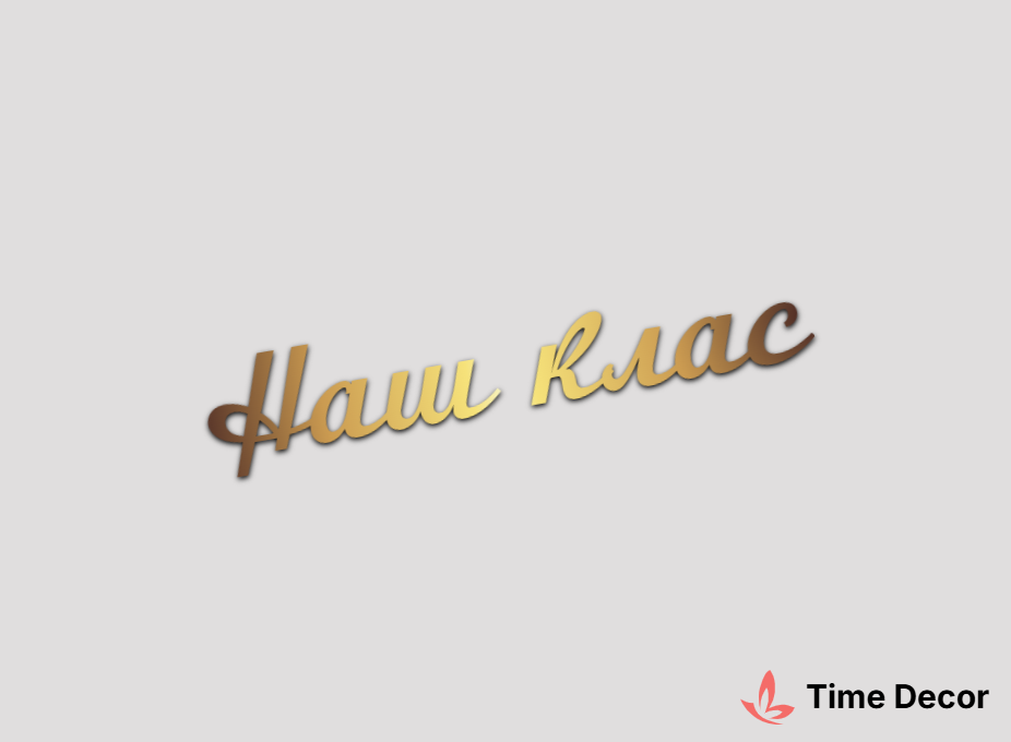 Пластиковий напис "Наш клас" – дзеркальний або матовий пластик, можливе виготовлення з клейкою зворотною поверхнею для легкого монтажу.