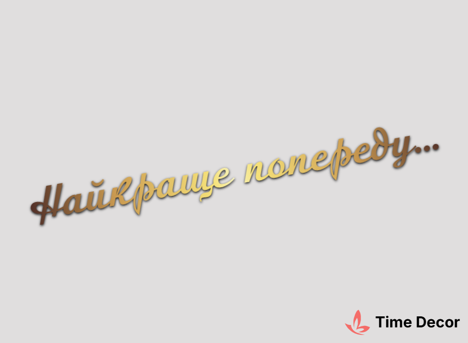 Пластиковий напис "Найкраще попереду…" – дзеркальний або матовий пластик, можливе виготовлення з клейкою зворотною поверхнею для легкого монтажу.