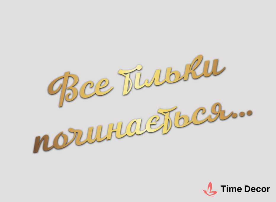 Пластиковий напис "Все тільки починається…" – дзеркальний або матовий пластик, можливе виготовлення з клейкою зворотною поверхнею для легкого монтажу.