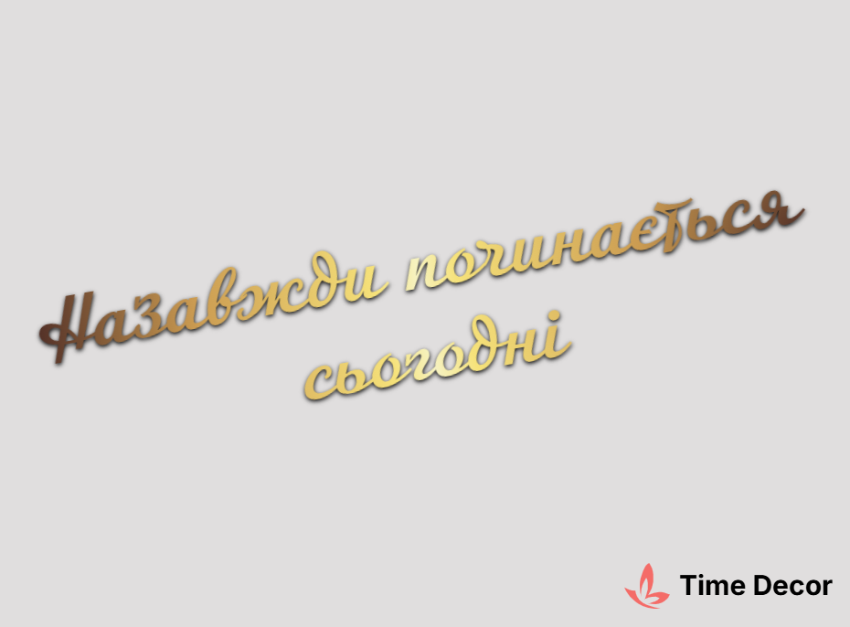 Пластиковий напис "Назавжди починається сьогодні" – дзеркальний або матовий пластик, можливе виготовлення з клейкою зворотною поверхнею для легкого монтажу.