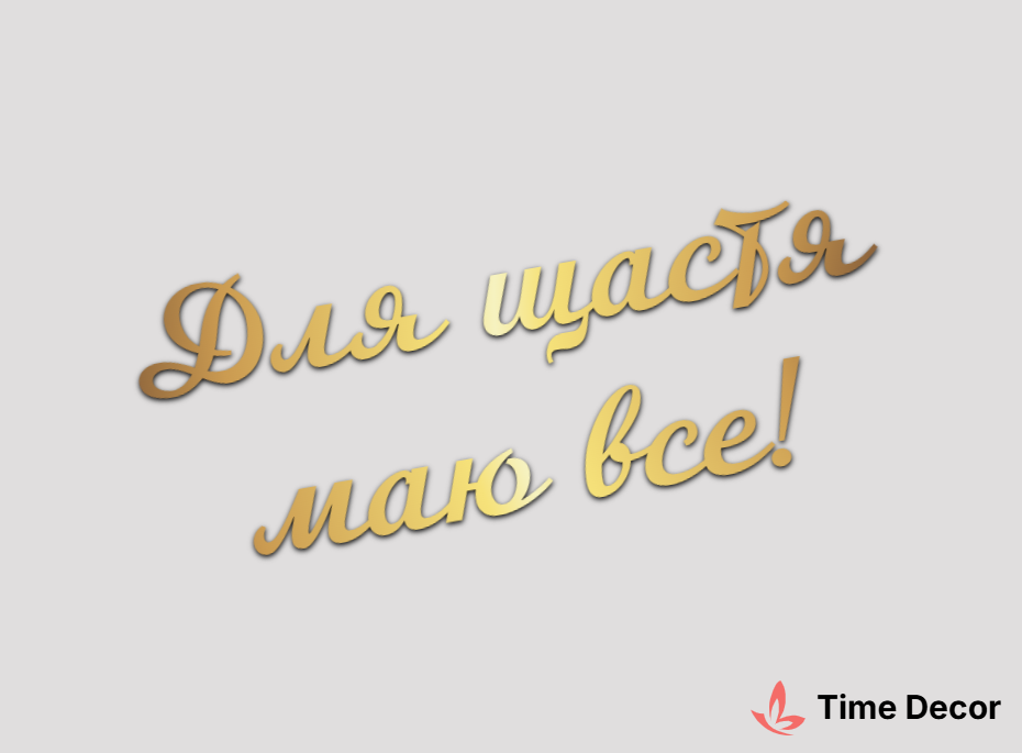 Пластиковий напис "Для щастя маю все!" – дзеркальний або матовий пластик, можливе виготовлення з клейкою зворотною поверхнею для легкого монтажу.