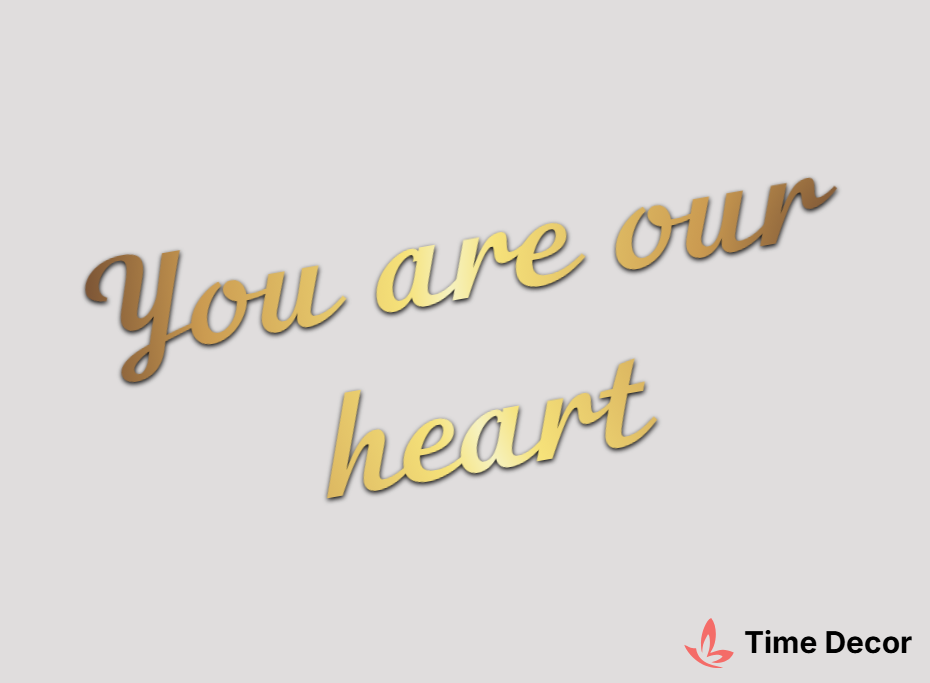 Пластиковий напис "You are our heart" – дзеркальний або матовий пластик, можливе виготовлення з клейкою зворотною поверхнею для легкого монтажу.
