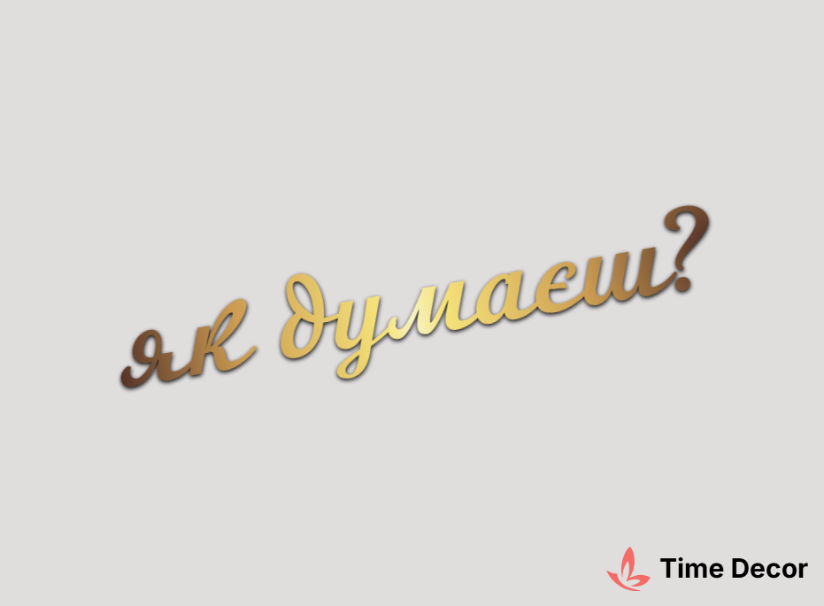 Пластиковий напис "як думаєш?" – дзеркальний або матовий пластик, можливе виготовлення з клейкою зворотною поверхнею для легкого монтажу.