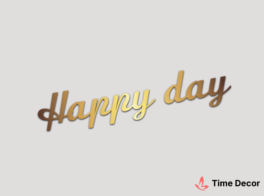 Пластиковий напис "Happy day" – дзеркальний або матовий пластик, можливе виготовлення з клейкою зворотною поверхнею для легкого монтажу.