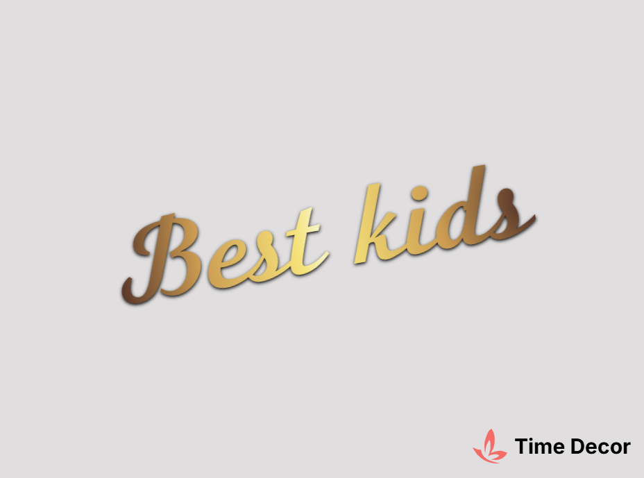 Пластиковий напис "Best kids" – дзеркальний або матовий пластик, можливе виготовлення з клейкою зворотною поверхнею для легкого монтажу.