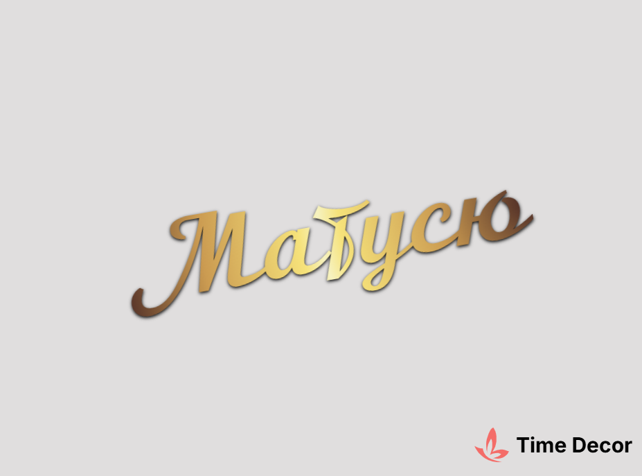 Пластиковий напис "Матусю" – дзеркальний або матовий пластик, можливе виготовлення з клейкою зворотною поверхнею для легкого монтажу.