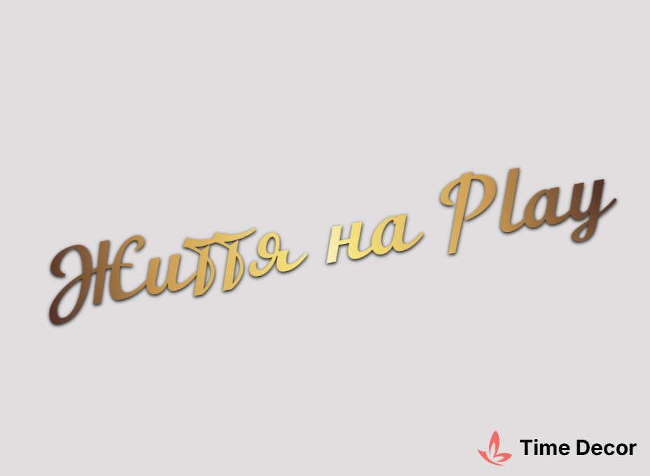 Пластиковий напис "Життя на Play" – дзеркальний або матовий пластик, можливе виготовлення з клейкою зворотною поверхнею для легкого монтажу.