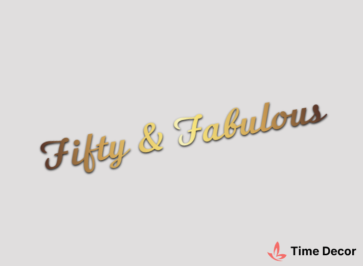 Пластиковий напис "Fifty & Fabulous" – дзеркальний або матовий пластик, можливе виготовлення з клейкою зворотною поверхнею для легкого монтажу.
