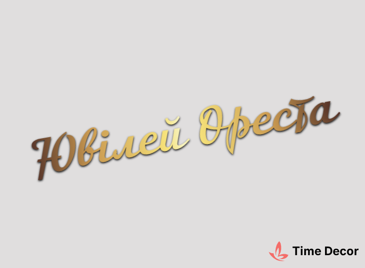 Пластиковий напис "Ювілей Ореста" – дзеркальний або матовий пластик, можливе виготовлення з клейкою зворотною поверхнею для легкого монтажу.