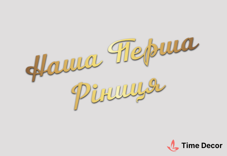 Пластиковий напис "Наша Перша Ріниця" – дзеркальний або матовий пластик, можливе виготовлення з клейкою зворотною поверхнею для легкого монтажу.