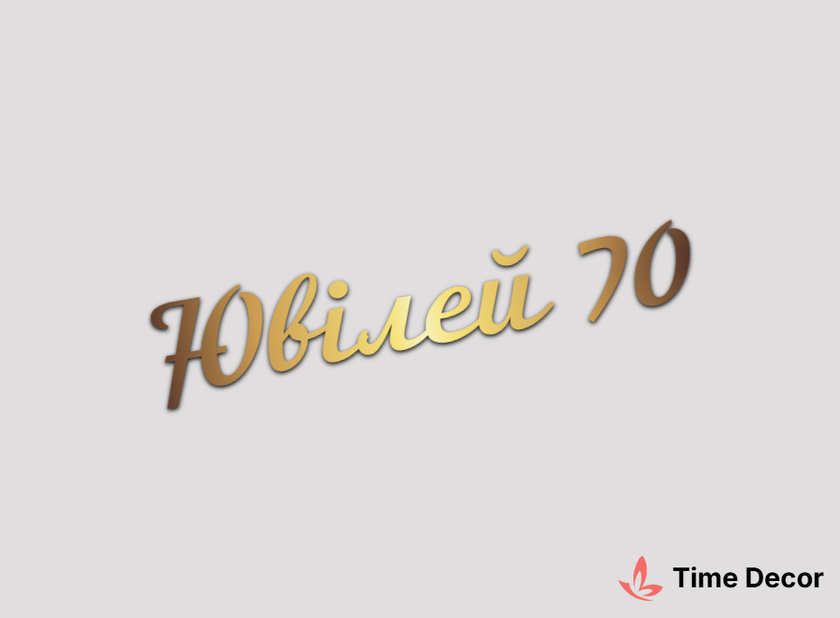 Пластиковий напис "Ювілей 70" – дзеркальний або матовий пластик, можливе виготовлення з клейкою зворотною поверхнею для легкого монтажу.