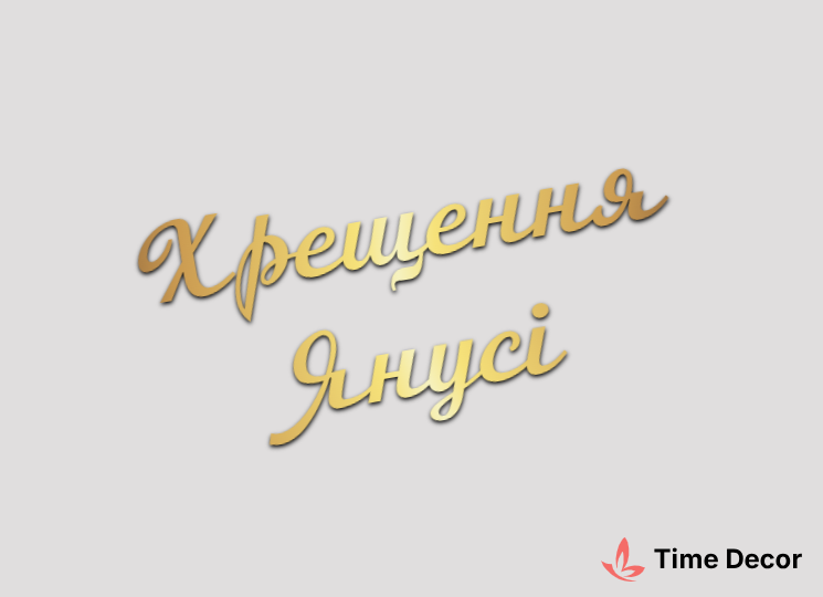 Пластиковий напис "Хрещення Янусі" – дзеркальний або матовий пластик, можливе виготовлення з клейкою зворотною поверхнею для легкого монтажу.