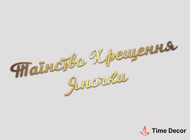 Пластиковий напис "Таїнство Хрещення Яночки" – дзеркальний або матовий пластик, можливе виготовлення з клейкою зворотною поверхнею для легкого монтажу.