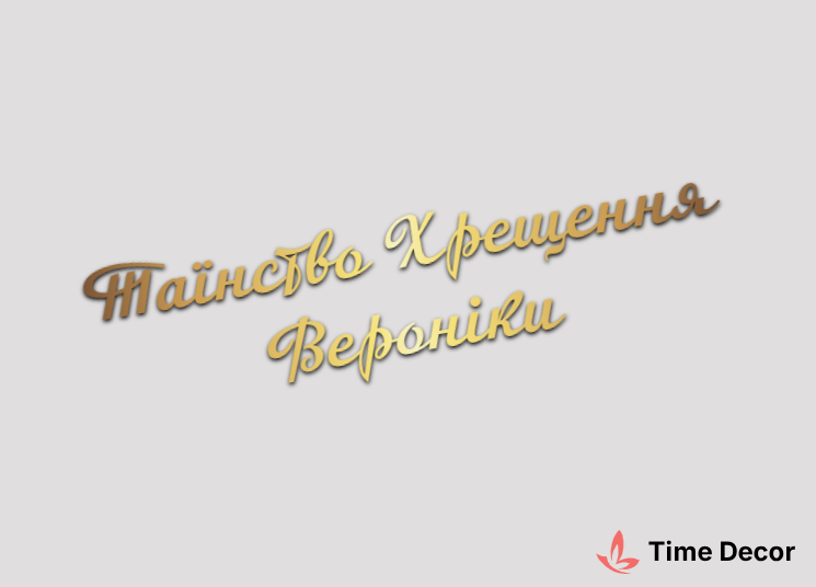 Пластиковий напис "Таїнство Хрещення Веронiки" – дзеркальний або матовий пластик, можливе виготовлення з клейкою зворотною поверхнею для легкого монтажу.