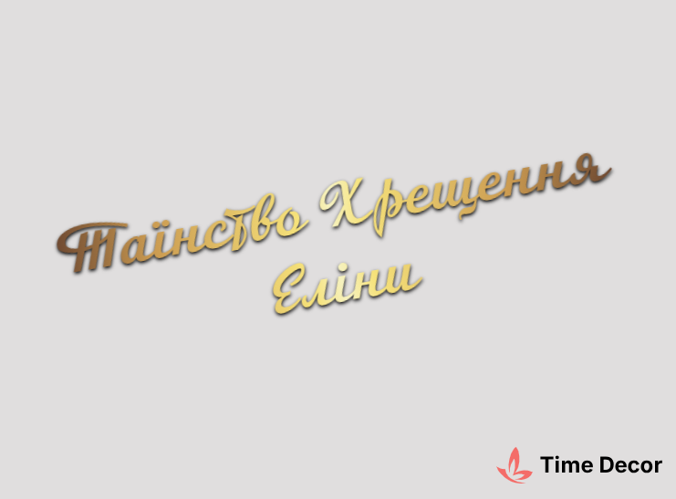 Пластиковий напис "Таїнство Хрещення Еліни" – дзеркальний або матовий пластик, можливе виготовлення з клейкою зворотною поверхнею для легкого монтажу.