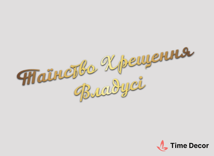 Пластиковий напис "Таїнство Хрещення Владусі" – дзеркальний або матовий пластик, можливе виготовлення з клейкою зворотною поверхнею для легкого монтажу.