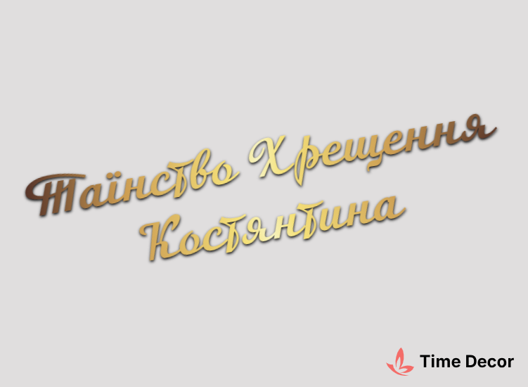 Пластиковий напис "Таїнство Хрещення Костянтина" – дзеркальний або матовий пластик, можливе виготовлення з клейкою зворотною поверхнею для легкого монтажу.