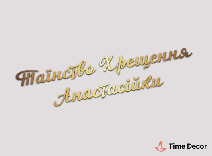 Пластиковий напис "Таїнство Хрещення Анастасійки" – дзеркальний або матовий пластик, можливе виготовлення з клейкою зворотною поверхнею для легкого монтажу.