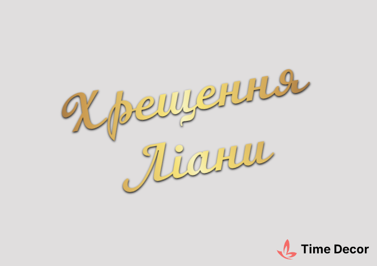 Пластиковий напис "Хрещення Ліани" – дзеркальний або матовий пластик, можливе виготовлення з клейкою зворотною поверхнею для легкого монтажу.