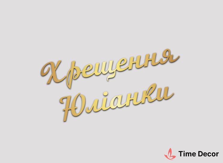 Пластиковий напис "Хрещення Юліанки" – дзеркальний або матовий пластик, можливе виготовлення з клейкою зворотною поверхнею для легкого монтажу.
