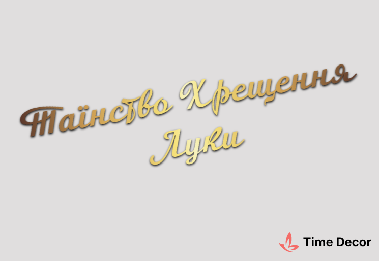 Пластиковий напис "Таїнство Хрещення Луки" – дзеркальний або матовий пластик, можливе виготовлення з клейкою зворотною поверхнею для легкого монтажу.
