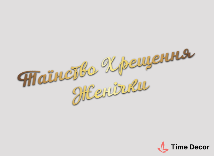 Пластиковий напис "Таїнство Хрещення Женічки" – дзеркальний або матовий пластик, можливе виготовлення з клейкою зворотною поверхнею для легкого монтажу.