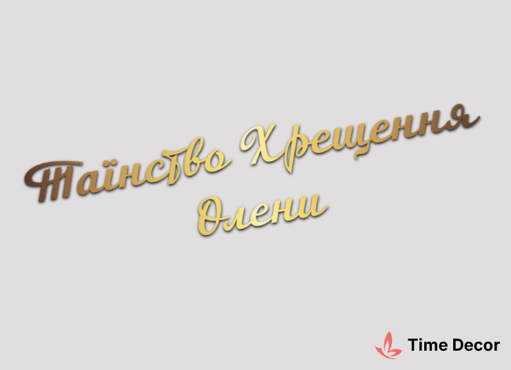Пластиковий напис "Таїнство Хрещення Олени" – дзеркальний або матовий пластик, можливе виготовлення з клейкою зворотною поверхнею для легкого монтажу.