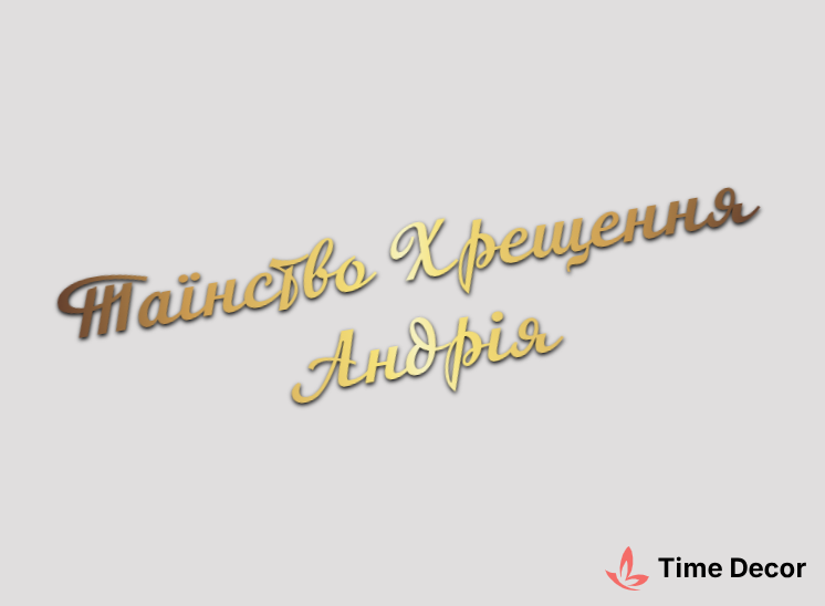 Пластиковий напис "Таїнство Хрещення Андрія" – дзеркальний або матовий пластик, можливе виготовлення з клейкою зворотною поверхнею для легкого монтажу.