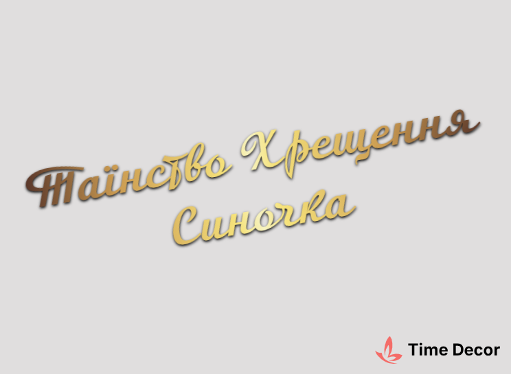 Пластиковий напис "Таїнство Хрещення Синочка" – дзеркальний або матовий пластик, можливе виготовлення з клейкою зворотною поверхнею для легкого монтажу.