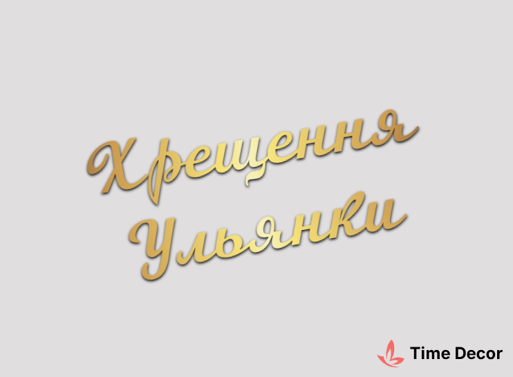 Пластиковий напис "Хрещення Ульянки" – дзеркальний або матовий пластик, можливе виготовлення з клейкою зворотною поверхнею для легкого монтажу.